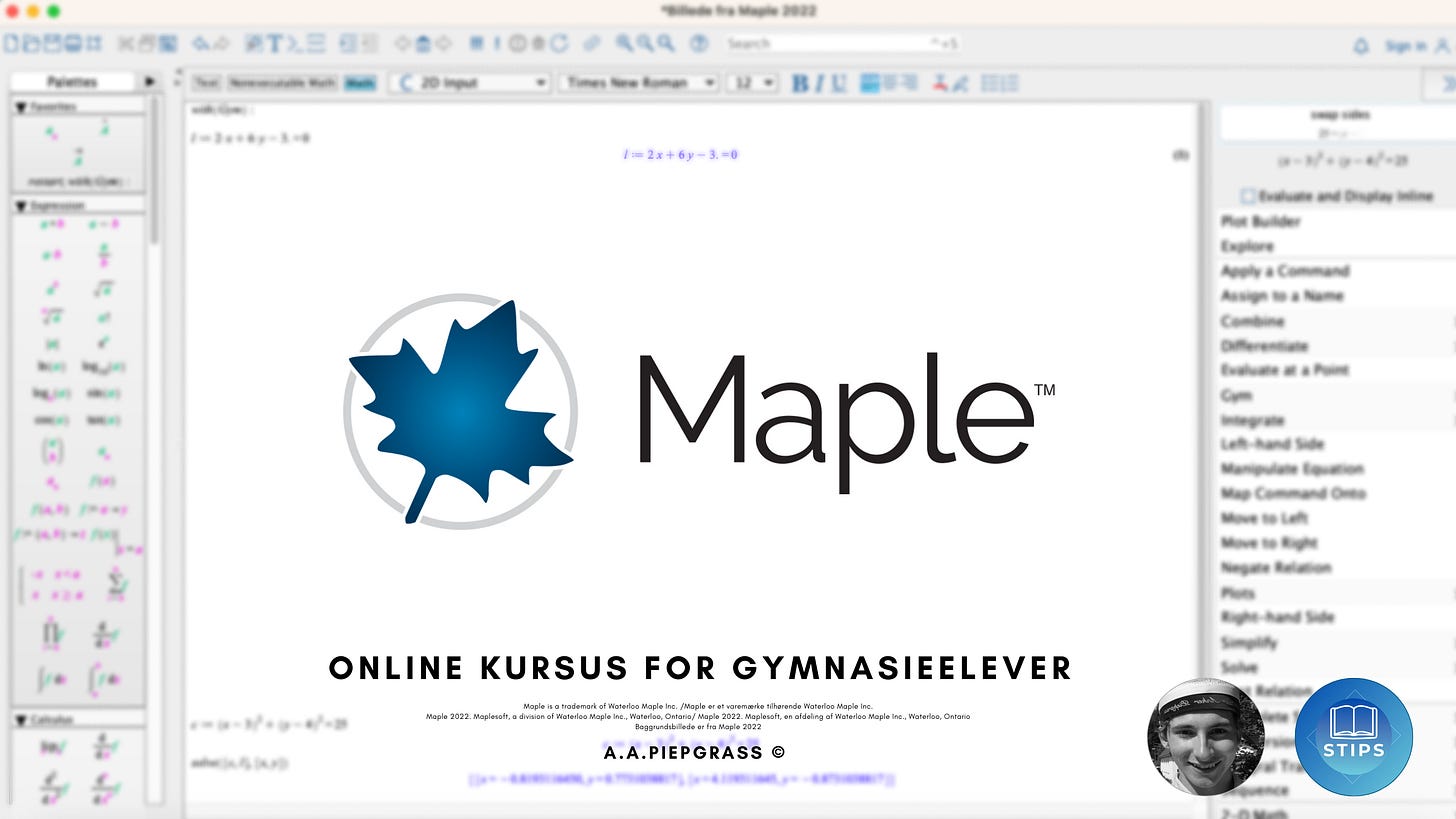 Kursuset er lavet ud fra Maple 2022 release 2022.1 og pensumet i matematik B og matematik A på STX.